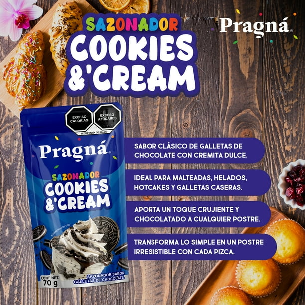 Lleva tus bebidas y postres a otro nivel con el Sazonador Pragná sabor Cookies & Cream. Combina el sabor clásico de galleta de chocolate con notas cremosas, ideal para lograr un acabado tipo cafetería y darle ese toque “premium” que se vende solo.