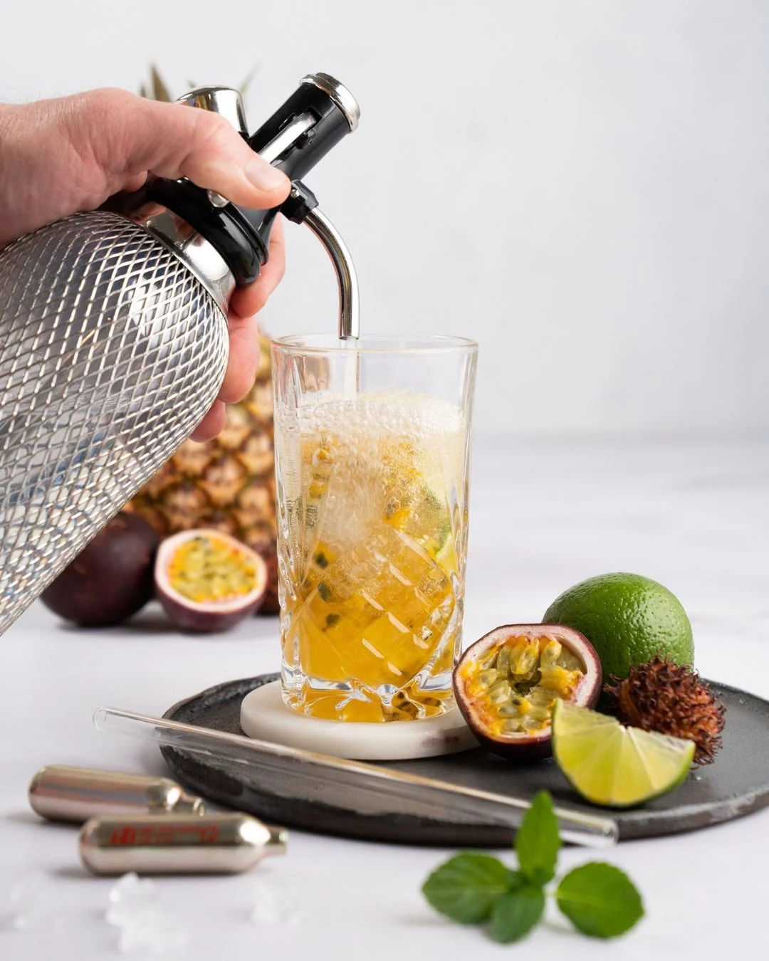 El sistema de cilindro PEN y cápsulas de soda permite obtener agua con una textura perfectamente gasificada con solo accionar una palanca ⚙️✨. De esta manera, jugos 🍹, cocteles 🍸 y mocktails 🧃 pueden prepararse rápida y fácilmente con agua fresca con gas.